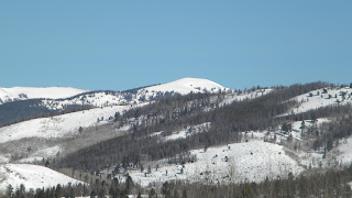 Don't you wish you were here? This is what we wake up to every morning during the winter season at Medicine Bow Lodge. Our guests' that are here right now are riding in this area today. They couldn't ask for a more perfect day to snowmobile. It is because of these wonderful snows that God sends that allows us to have such beautiful summers with the wild flowers, green meadows, lush pastures for the horses and fantastic fishing in the streams, rivers of these mountains located in the unique Medicine Bow National Forest. A day like today, I know spring is coming because of the warmer temperatures. This photo is of Kennedy Peak and right below it is a favorite horseback ride called "Mitchel's Ridge", named after one of our favorite past wranglers. As you can see, it is a picturesque view for an all day horseback ride, a place to get off the saddle, enjoy some lunch, and rest your bottoms, maybe even get in a short nap, before heading down the steep mountain inclines, play in the meadows and cross the crystal clear streams.Oh, if Tim goes along, you are guaranteed that he will take some time and dabble in panning for gold! Don't worry, our sure footed horses are up for this ride and enjoy the breaks by the streams, to nibble on yummy Wyoming grasses. The ideal time is beginning of July through early October. Just one of the many rides to enjoy winter, spring, summer, and fall. So, don't you wish that you were here?
